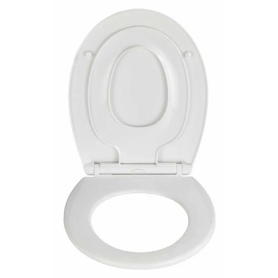 Der weiße WC-Sitz Syros ist aus sehr bruchstabilem Thermoplast hergestellt, welches strapazierfähig ist. Die hygienische, porenfreie Oberfläche ist leicht zu reinigen.