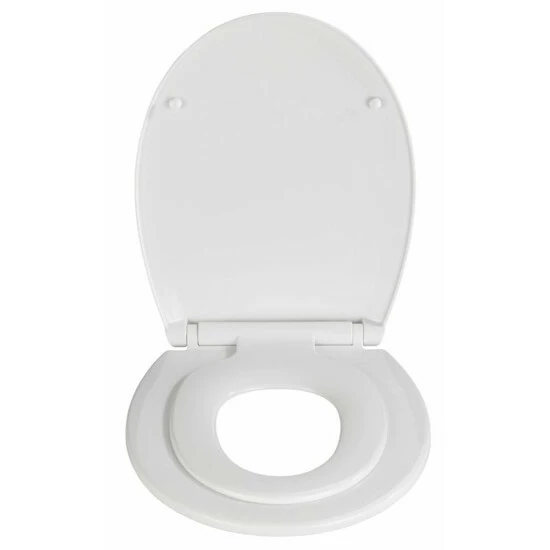 Der Sitz wurde aus dem angenehmen Thermoplast hergestellt, er fühlt sich “weich” an und ist leicht zu reinigen. Für die kleinen Familienmitglieder kann man den Innensitz mit kleinerem Durchmesser runterklappen und nach Bedarf wieder hochstellen. Hierdurch wird kein gesonderter WC-Kindersitz mehr benötigt.