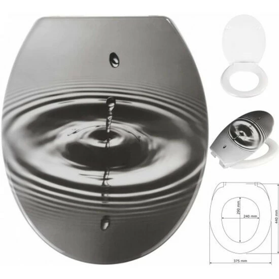 WC-Sitz Waterdrop grau, Easy-Close, Duroplast Easy Close Absenkautomatik für leises und sanftes Deckelschließen aus hochwertigem Duroplast mit ausgefallenem Wassertropfen-Motiv bruchsicher, kratzfest, strapazierfähig und hygienischer Ring massive, rostfreie Befestigung Maße: Deckel: 36,5 x 44,5cm Brille Außenring: 37,5 x 44cm Brille Öffnung: 24 x 29cm Befestigungsabstand: 10 18cm Gewicht: 2072 g