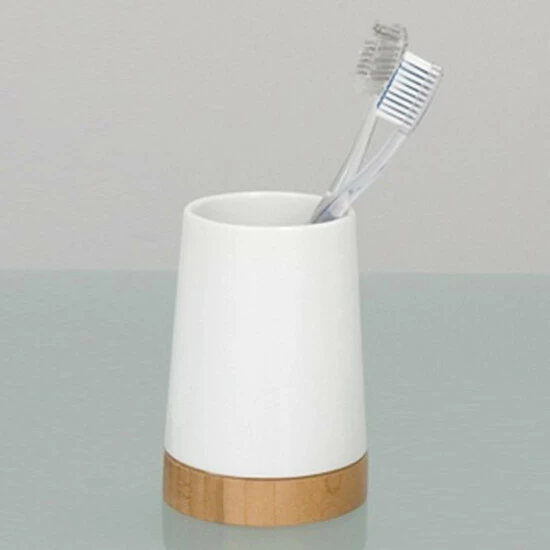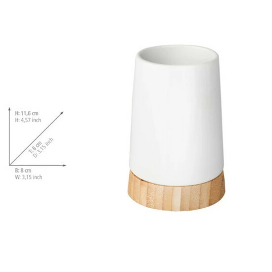 Dieser Zahnbürstenhalter aus der Serie Bamboo passt in jedes Badezimmer! Der Halter hat eine elegante Bambusoptik zusammen mit schöner weißer Keramik. Platzieren Sie alle Ihre Zahnbürsten in diesem Halter!