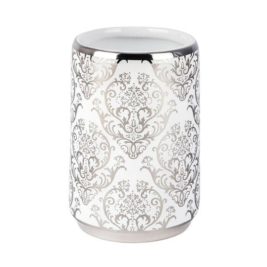 WENKO Zahnputzbecher Keramik Barock Silber/Weiß