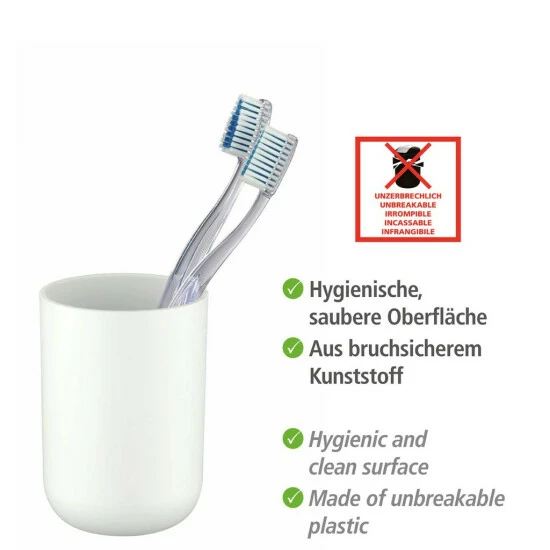 Der elegant gehaltene Zahnputzbecher aus der Bad-Serie Brasil überzeugt durch schlichte Eleganz. Der in stilvollen Weiß gehaltene Zahnputzbecher ist aus Spezialkunststoff gefertigt und somit absolut bruchsicher.