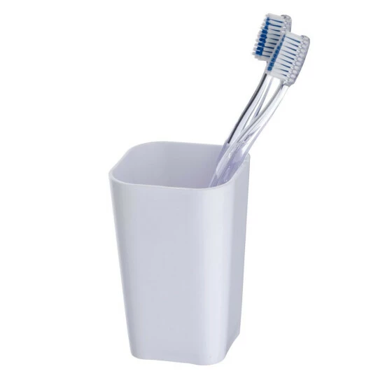 WENKO Zahnputzbecher Candy im eleganten Design in der Fabe weiß Maße: 11 x 7,3 x 7,3 cm Material: Hochwertiger schwerer Kunststoff