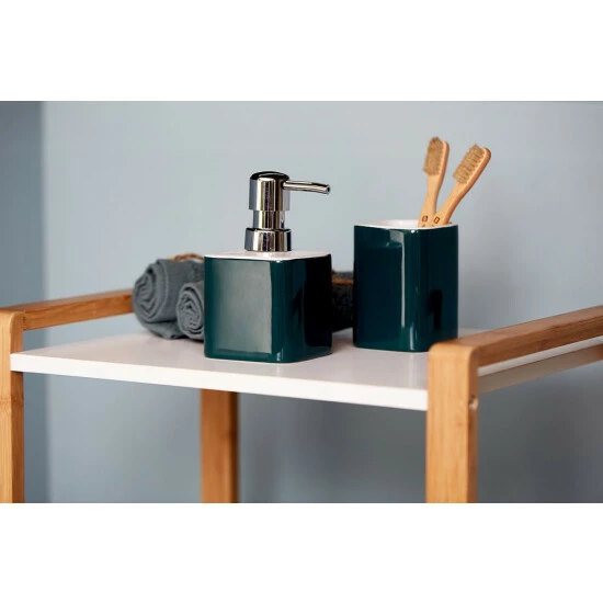 Der elegante Zahnputzbecher Elmo ist aus hochwertiger Keramik gefertigt. Das frische Grün mit weißer Kontrastfarbe ist ein echtes Highlight in jedem Badezimmer und Gäste-WC. Mit dem Zahnbecher können Sie stilvoll Ihre Zahnbürsten und Zahnpasta stets griffbereit aufbewahren. Wie wäre es mit einem Becher für jedes Familienmitglied?
