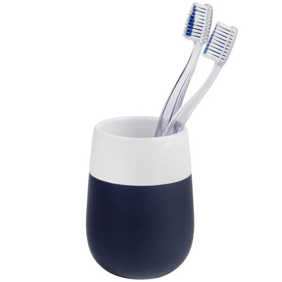 Durch die ausgefallene Farbgebung im eleganten Dunkelblau und Weiß schaffen die Accessoires ein stilsicheres Ambiente in jedem Badezimmer.