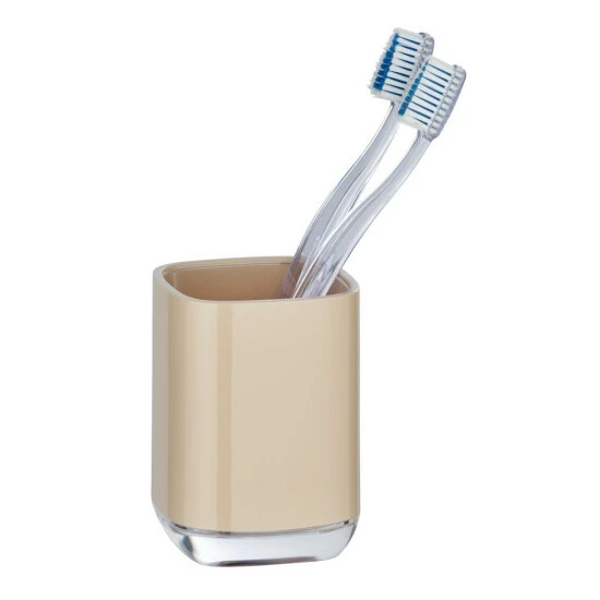 Wenko Masone Badezimmerbecher Bewahren Sie Ihre Zahnbürsten und Zahnpasta mit diesem modernen Badezimmerbecher auf. Er ist ideal für das Badezimmer oder die Gästetoilette. Hergestellt aus hochwertigem Kunststoff und in auffälliger 2-Komponenten-Optik in Beige mit transparentem Boden Spezifikationen: Farbe: beige Material: Polystyrol Abmessungen: 7,5 x 7,5 x 10,5 cm (L x B x H) Gewicht: 0,14 kg