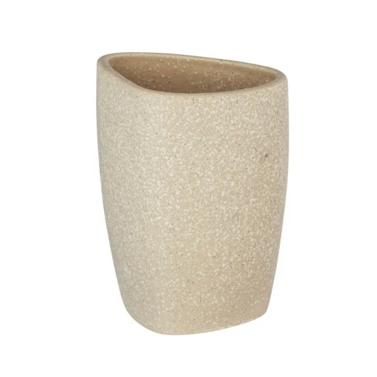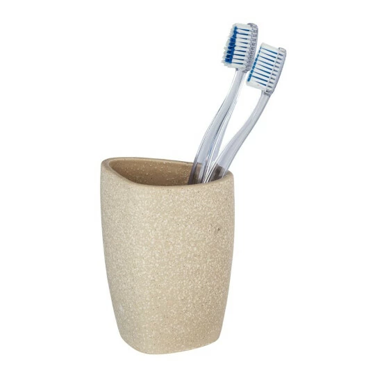 Durch die stilvolle, dreieckige Form in natürlich beiger Steinoptik wirkt jedes Badezimmer direkt behaglicher und harmonischer. In diesem modernen Zahnputzbecher finden Ihre Zahnbürsten und Zahnpasta stets einen sicheren Platz und sind schnell griffbereit. Wie wäre es mit einem Becher für jedes Familienmitglied?