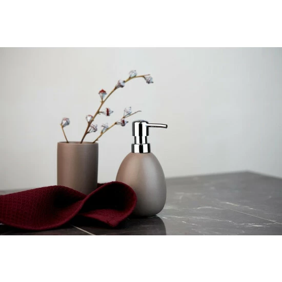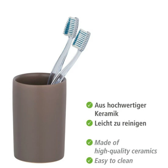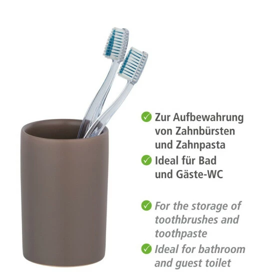 Der Zahnputzbecher Polaris Taupe bietet einen dekorativen Stellplatz für Zahnbürsten und -pasta und hält diese stets an gewünschter Stelle griffbereit.