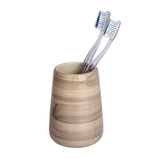 WENKO Sand Zahnputzbecher-/ Zahnbürstenhalter, für Zahnbürste und Zahnpasta, Keramik, Pottery 8 x 11 x 8 cm, Beige
