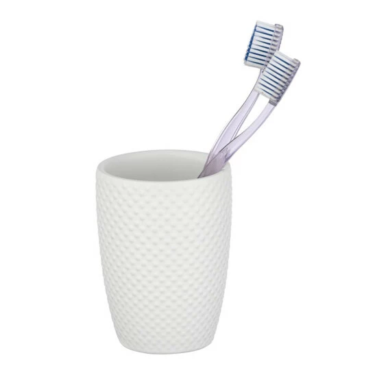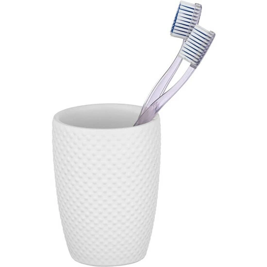 WENKO Zahnputzbecher Punto Weiß – Zahnbürstenhalter für Zahnbürste und Zahnpasta, Keramik, 8 x 11 x 8 cm, Weiß