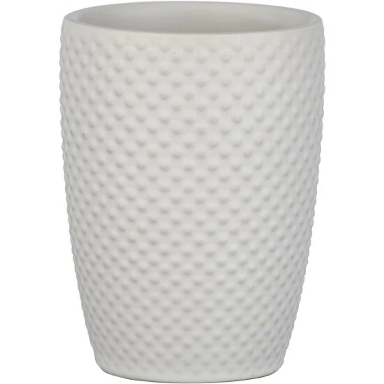 Die elegante Keramik-Zahnputzbecher Punto ist ein dekoratives Accessoire und bietet Platz für handliche Badaccessoires. Die Tasse hat einen Durchmesser von ca. 8 cm und eine Höhe von 11 cm. Starkes Keramikmaterial gibt ihm das richtige Gewicht, so dass es immer stabil ist. Geeignet für die Aufbewahrung nicht nur Zahnbürsten und Pasten, sondern auch andere kosmetische Utensilien. Die Wände der Tasse schmücken zarte, regelmäßige Tabs. Das Ganze sieht extrem ordentlich aus und wird toll sein, um mit anderen Kleinigkeiten in einem ähnlichen Stil zu kombinieren. Das Weiß der Tasse passt gut zu den dunkleren Farben im Badezimmer. Auf dem Prinzip des Kontrastes wird es ihre Intensität betonen und das Interieur wiederbeleben. Keramik Punto Zahnbürstenbecher passt gut zu anderen Badaccessoires dieser Serie.