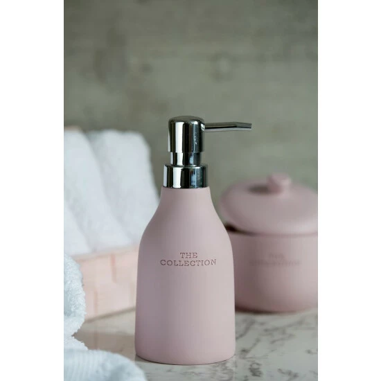 Mit der Bad-Accessoires Serie The Collection bringen Sie den glamourösen Shabby Chic Stil in Ihr Badezimmer oder Gäste-WC. Mit dem Seifenspender der Bad-Accessoires Serie The Collection in zartem Rosa zaubern Sie eine entspannte, süße Note in Ihr Badezimmer. Der glamouröse Seifendosierer wertet Ihr Interieur auf und verleiht dem Bad oder Gäste-WC einen gewissen Charme. Besonders raffiniert: Der aufwendig gravierte Schriftzug macht alle Accessoires dieser Bad-Serie zu einem echten Hingucker. Die Fertigung aus hochwertigem Kunststoff in bonbonfarbenem Rosa verleiht dem Seifenspender eine pastellfarbene Eleganz.