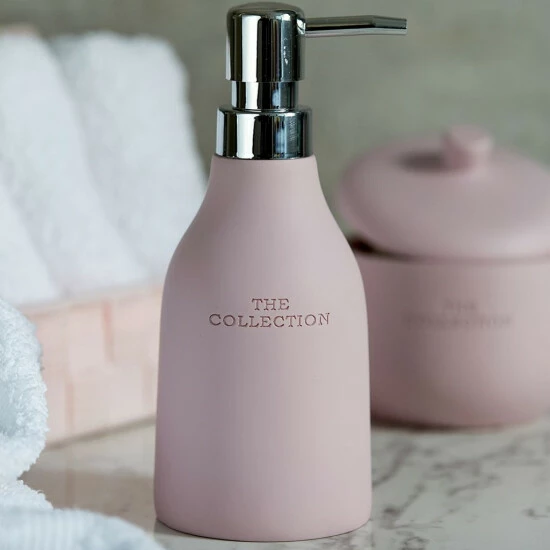 Elegant aufbewahrt: Die vintage Badserie in Blush Pink setzt bezaubernde Akzente im gesamten Haushalt. Mit aufwendig graviertem Schriftzug wird das charmante Design in Rouge Rosa zu einem absolutem Hingucker. Der extravagante Handseifenspender ‘The Collection’ bietet Flüssigseife einen dekorativen Platz und hält diese stets an gewünschter Stelle griffbereit – sowohl in der Küche, im Bad als auch im Gäste-WC.