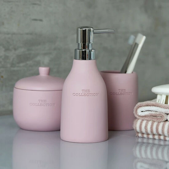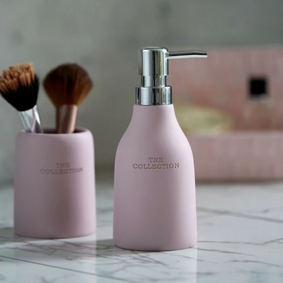 Rosige Zeiten: Der nachfüllbarer Seifendosierer aus der Serie The Collection in zartem Rosa sorgt für die portionierte Abgabe von Flüssigseife, Spülmittel oder Lotion. Der stilvolle Seifenspender im Shabby Chic Stil kann individuell mit 330 ml Flüssigseife oder Waschlotion gefüllt werden. Der moderne Zahnbürstenhalter sorgt für die ordentliche Aufbewahrung von Zahnbürste, Zahnpasta & Co.