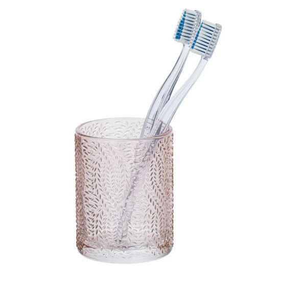 Der stilvolle Zahnputzbecher Vetro in Rosa bietet einen hübschen Stellplatz für Zahnbürsten und -pasta und hält diese stets an gewünschter Stelle griffbereit.
