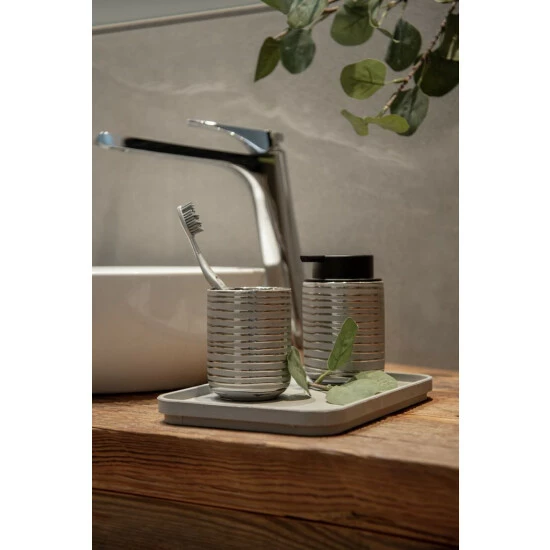 Die moderne Badserie VILALBA in gedämpften und kräftigen Farben basiert auf einer harmonischen Kombination aus Aussehen, Berührung und Funktionalität. In silberner Farbe und mit einer aufwendig strukturierten Oberfläche können Sie die VILALBA-Serie von Bad-Accessoires in jedem Bad und Gäste-WC genießen. Verstauen Sie mit einer praktischen Tasse elektrische Bürsten, Handzahnpasta oder Make-up-Bürsten und Zubehör!