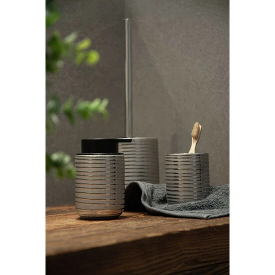 Die horizontale, linienförmige Reliefstruktur dieser kostbaren Accessoires Serie aus Keramik untermalt die extravaganten Rundungen, die mit einem glänzenden Finish versehen sind. Silber wirkt eher kühl, doch besonders in der Kombination mit schwarzen Accessoires entfaltet es seine anmutige Wirkung. Die Badezimmer-Serie mit ihrer opulenten Form steht für Eleganz und ist geschaffen für alle, die es prunkvoll mögen.