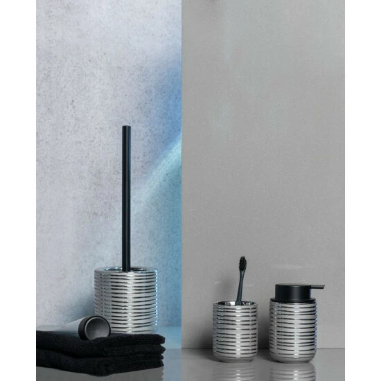 Die moderne VILALBA Toilettengarnitur mit gerippter Struktur und einer glänzenden Oberfläche in silberner Farbe schafft ein elegantes Design im Bad und WC für die Gäste.