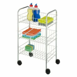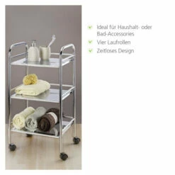 WENKO Rollwagen Mit 3 Ablagen, Für Bad, Küche Und Haushalt | Inkl. 2er Set Reinigungsschwämme Gratis